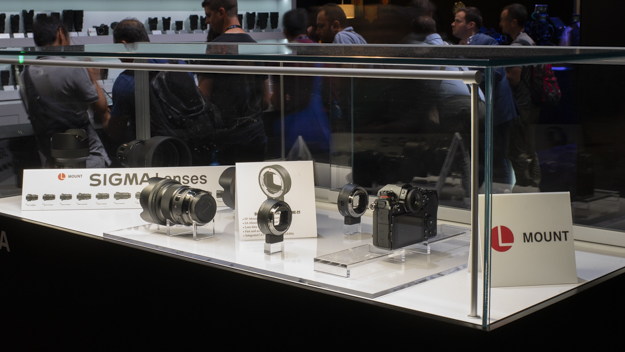 既存のシグマレンズをLマウントを搭載したカメラに使用できる専用マウントアダプター「MC-21」も展示。シグマ製のSAマウントやシグマ製キヤノンEFマウントにMC-21を装着することで、Lマウントシステムのレンズとして使用可能となる。国内での価格は、シグマSAマウント用の「SIGMA SA-L」が12,500円。キヤンEFマウント用の「CANON EF-L」が37,500円。