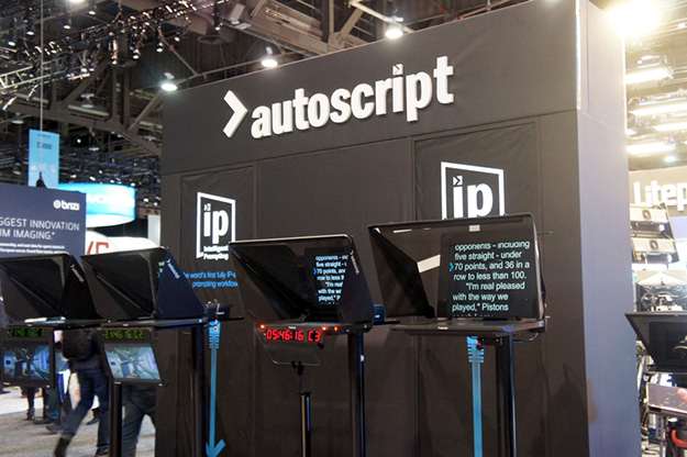 Autoscriptはスクリプト表示ソフトWinPlus-IP(Intelligent Prompting)のほか、EPIC-IPシリーズやEVO-IPシリーズなど最新のプロンプターも出展。これらはEthernetのほかSDI接続も可能で既存のビデオカメラによる表示のほか、テキストなどからの表示のも対応している