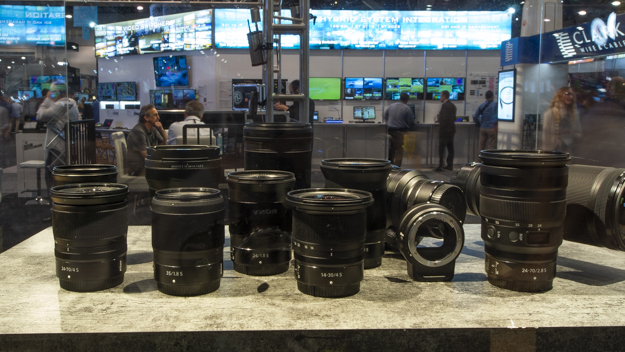 Zマウントレンズの展示も充実していた。未発売も多数展示されていたのも興味深かった。こちら側は広角中心のラインナップ。