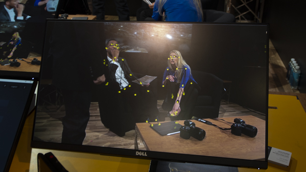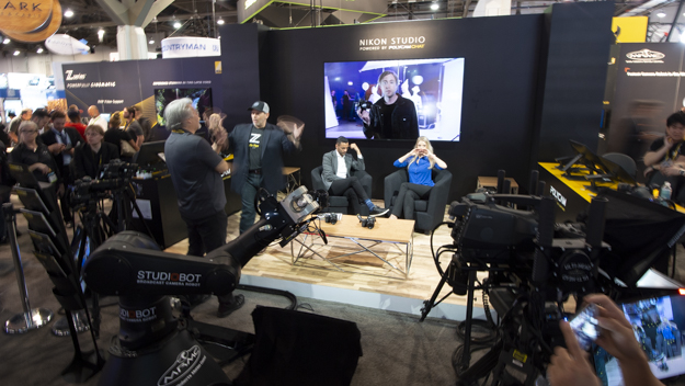 ソリューション側のコーナーでは、MRMCの自動放送ソリューションを展示。MRMCは2016年にNikon Corporationによって買収。現在はニコンの子会社となっている。今回メインで紹介しているのがPolycam Chatを使った自動化されたスタジオ撮影だ。顔と手足の検出ソフトウェアを使用して、最大4人の登壇者のカメラ操作を自動化してくれる。ブースでは、手放しの状態でもカメラが人間を自動的に追って撮影する様子を実現していた。