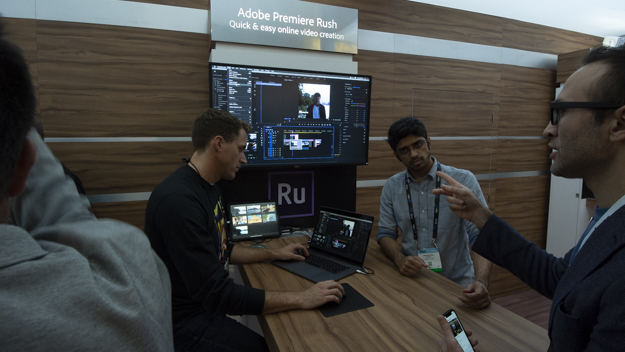 ステージの背面では、各ツールの個別ブースが設けられていた。テクニカルな質問や各製品を個別にデモやレクチャーが行われており、NAB前にアップデートしたAdobe Creative Cloudの新機能紹介も行われていた。