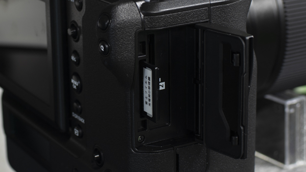 富士フイルムのデジタルカメラの記録メディアはSDカード対応のものが多いが、GFX100でもSDカードに対応。動画撮影の際にはUHS-IIIなどの高速なメディアを推奨している。