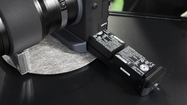 バッテリーは従来のGFXシリーズと同じ「NP-T125」が引き続きGFX100でも採用。専用バッテリーは標準で2個入る仕様で、2個で800枚の撮影が可能。バッテリー1個でも動作できる。