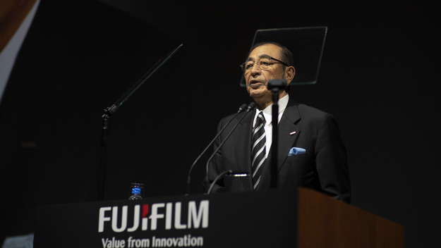 GFX100を紹介する光学・電子映像事業部長 飯田年久氏