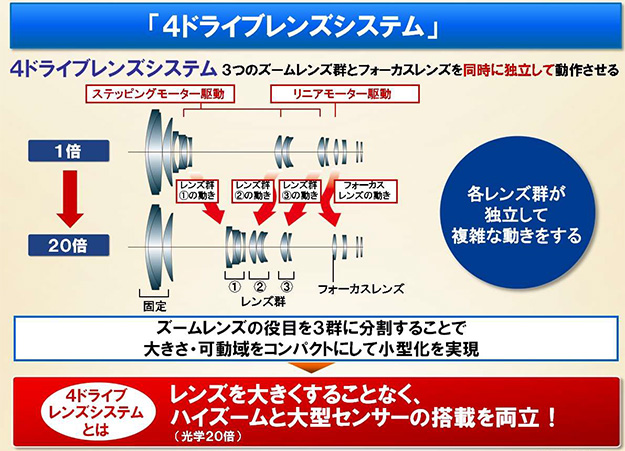 同製品は、1080/60pのフルHD映像をHDMI、SDI、LANから出力することが可能。また、1/2.3型MOSセンサーとDSP(デジタルシグナルプロセッサー)を採用し、光学20倍ズームと超解像30倍ズームを実現する4ドライブレンズシステムを搭載。高い解像度を保ちながらのズームが可能だとしている。
