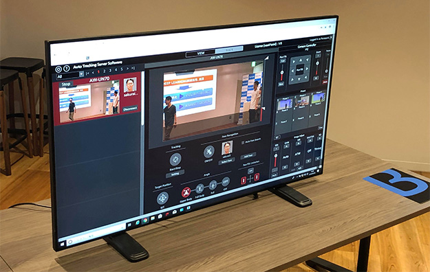 その他にも、自動追尾ソフトウェアの使用により、動き検知と顔認証を採用し、講師等がどの方向を向いても追従する。