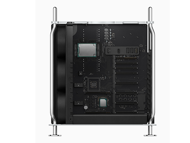 Mac Proは、最大28コアのパワフルなXeonプロセッサを搭載でき、64本のPCI Expressレーンを駆使することにより、高い処理能力と広いバンド幅を得ることができるとしている。また、合計300ワット超の電力を供給でき、プロセッサは一切の制約を受けることなく常に最大の能力を発揮できる。