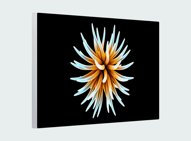 Pro Display XDRは、LEDの巨大なアレイ(配列)を用いたダイレクトバックライトシステムを採用し、フルスクリーン輝度で1,000nit、ピーク輝度で1,600nitを実現。アルミニウムの格子パターンをヒートシンクとして利用するサーマルシステムにより、フルスクリーン輝度の1,000nitをいつまでも保つことができるという。1,000,000:1のコントラスト比により明るい鏡面ハイライト、漆黒のブラック、そしてその中間にあるあらゆるディテールの色で表現される。