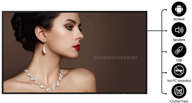 BenQのスマートディスプレイはUSBメモリを使用して、フォト、音楽、ビデオ、PDFファイルなどの様々なフォーマットを更新可能。PCや外部のデバイスを使わずにインターネットに接続でき、さらに、内蔵のAndroid OSと、WPS OfficeやVMWareのビジネスアプリもインストールされている。またBlizzビデオ会議アプリにより、スマートディスプレイは外部のPCやトレーニング、複雑なサーバーのセットアップを必要とせずにコミュニケーションを行う事ができるとしている(Blizzのビデオ会議を使用するためには、カメラ(付属品には含まれない)をインストールする必要がある)。