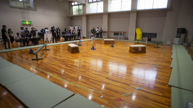 機体前方には、FPVカメラを搭載。FPVカメラは操作を行う際に前を見るだけのカメラだけではなく。AIと連動したビジョンテクノロジーにより、他のロボットの認識、走行トラックの認識、記号や標識などの認識が可能。