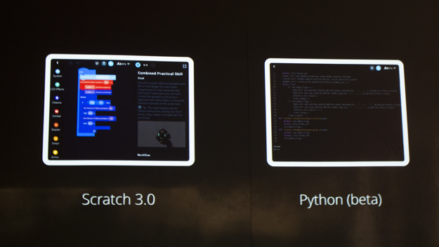 アプリはS1の全ての機能をプログラミングで動かすことができる。コードはわかりやすいビジュアルプログラミング「Scratch 3.0」と上級者向けのAI領域で活躍している「Python」が用意されている。