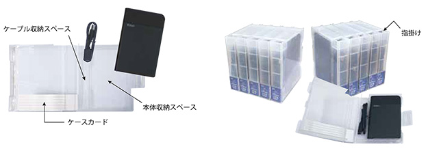 専用プラスチックケースにより、コンパクトに収納可能。添付の延長ケーブルも一緒に収納可能。
