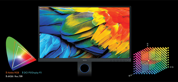 SW270Cは、Adobe RGB 99%、DCI-P3およびDisplay P3 97%、Rec.709およびsRGBカバー率100%の色空間を実現。複数の色空間のカラー標準に対応しており、写真編集や印刷物、映像編集など、さまざまな用途に必要な色を正確に表現するとしている。またさらに進化した16bit LUT(ルックアップテーブル)により10bit色深度の表現力を活かし、滑らかで豊かな階調表現が可能になったという。