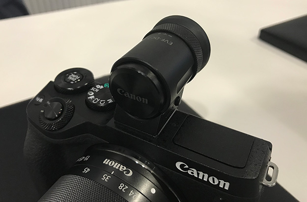 EOS M6 Mark IIにEVF-DC2を装着した状態