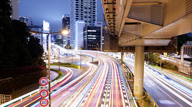 「シーンポジション」の「ライトトレイル」。長時間露光により、車のヘッドライトなどの光の軌跡をとらえ、幻想的な写真撮影が可能