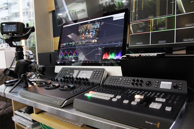 同店舗に導入されたモデルはセンターセクションに12フェーダーを含めた2ベイ構成。営業時間内であれば自由に試すことができる。そのほかにも、DaVinci Resolve Mini PanelやATEMスイッチャー、Blackmagic Pocket CinemaCamera 4Kおよび6Kなども実機展示している。