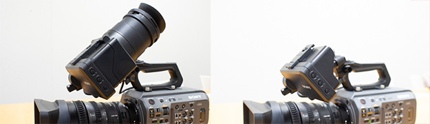 LCDビューファーは、肩載せの際にはビューファインダーとして使用できますが、簡単に取り外せるようになりましたので、FX9から覗くタイプ、フードと組み合わせて使う、どちらのシーンにも合わせてお使いいただけるようになりました。しかも現場で簡単に変更できるため、大変便利かと思います。