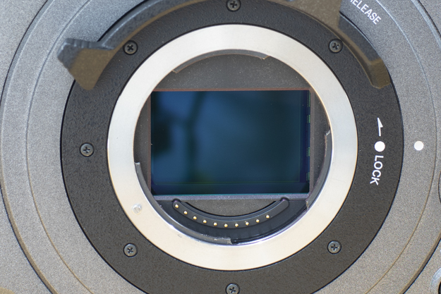 新開発6KフルサイズCMOSセンサーを搭載。レンズを外すと3:2のイメージセンサーが見える