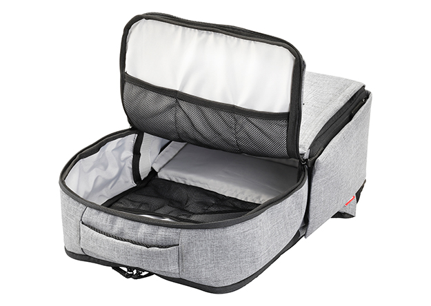 バッグ内部の上下を分ける仕切りを外すことで2気室を1気室に切り替え可能。上部収納部分にはアクセサリー用のメッシュポケットがあり、小物をすっきりと収納できる。Urban CamBag 12は13.3インチ、Urban CamBag 17は15.6インチのノートパソコンを収納できる専用スペースが背面に搭載されている。
