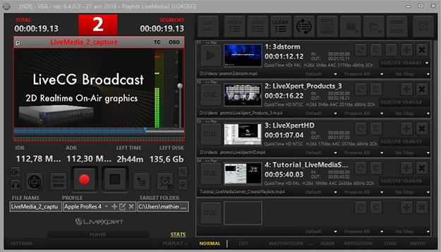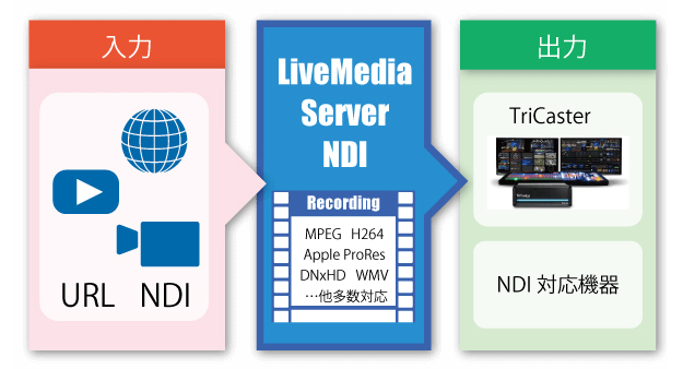 LMS-NDIは、NewTek NDIテクノロジーを使用した初めてのソフトウェアデュアルチャンネルHDビデオプレーヤー/レコーダー。イーサネットLANに接続されているWindows PCへとインストールが可能であり、2系統のNDIビデオストリームを、ほとんどの業界標準コーデックおよびファイル形式で同時に録画および再生することが可能。