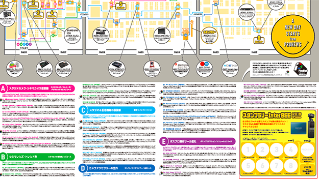 スタンプラリーInterBEE2019の応募用紙は、InterBEEの歩き方マップの右下にある。スタンプを8個集めてノベルティをゲット!