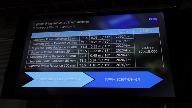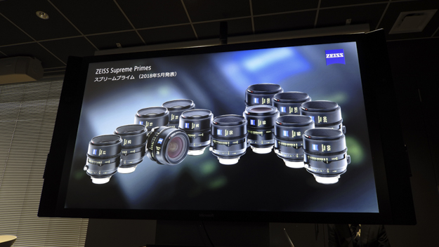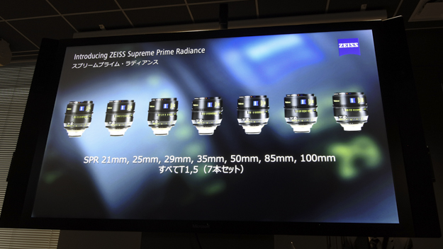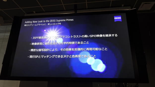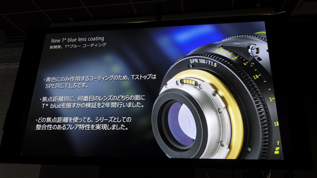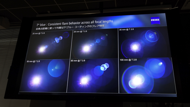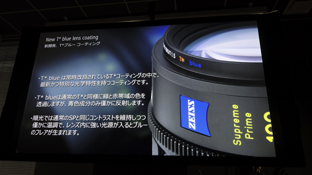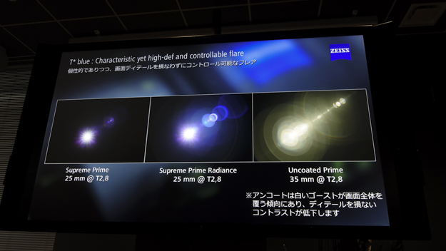 カールツァイスは11月13日、東京都内でハイエンドシネプライムのSupreme Prime Radianceの新製品発表会を行った。同社の小倉氏がT*blueコーティングやフレアの特徴を紹介したので、会場の様子を写真とともに紹介する。