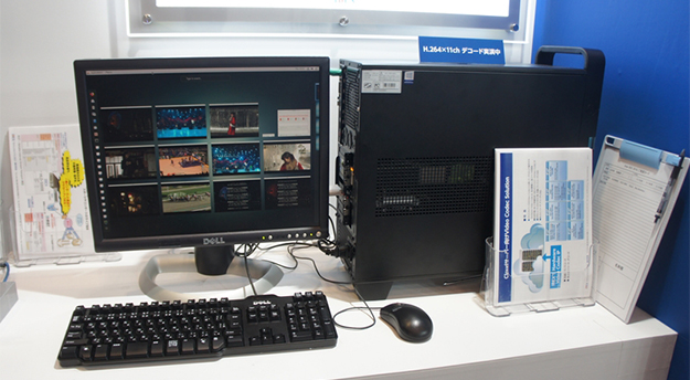 Cloud向けソリューションIBEX‘IP on Intel PAC Stratix 10。Apple ProResやApple ProRes RAWのほか、AVC-UltraやXAVC、HEVC/H.265、MPEG-4 AVC/H.264、MPEG-2、VC-3に対応可能。ブースではH.264/11ch 同時デコードの実演を行った