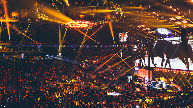 コンサートや音楽フェスティバルでのLEDスクリーンの使用は一般的になっているが、マムフォード・アンド・サンズのような一部のアーティストは、ライブパフォーマンス自体に重点を置き、観客を世界に引き込むアシストとして、舞台や照明を効果的に使用することを希望している。