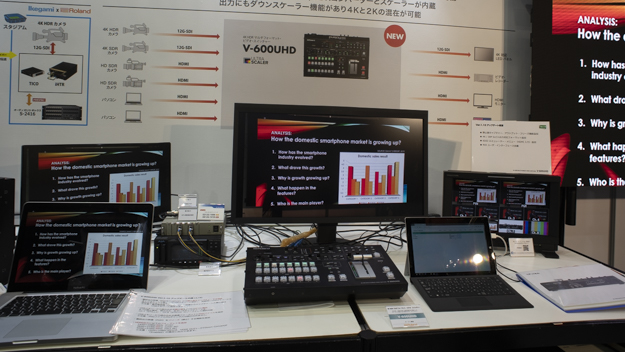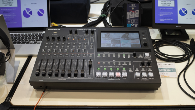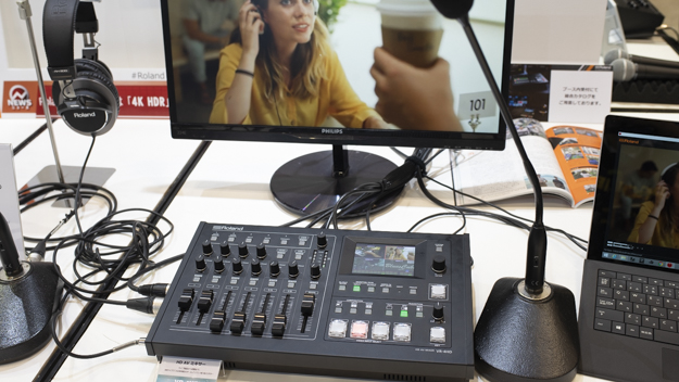 ローランドは、プロから一般家庭やオフィス内まで、幅広いユーザー層のビデオミキサーやスイッチャーを展示。もっとも力を入れていたのは、今年6月末に発売されたローランド初となる4Kスイッチャー「V-600UHD」だ。