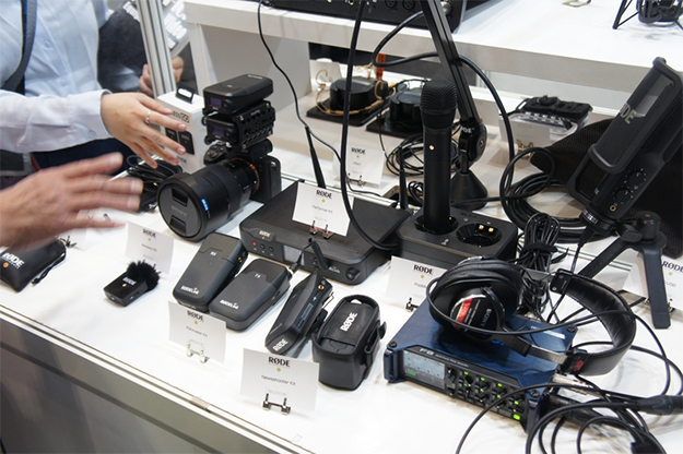 先日発売開始をしたRODE Microphonesの超小型ワイヤレス送受信機Wireless GOなどを展示