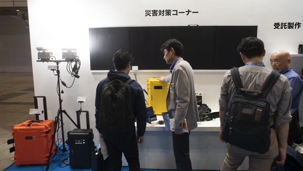 今年は自然災害の多い年だったが、ブースには災害対策コーナーというちょっと異質なゾーンが設けられていた。同コーナーでは、キャリングケースタイプで非常時でも持ち運びができる大容量ポータブル電源「IPS-1000A」を展示。
