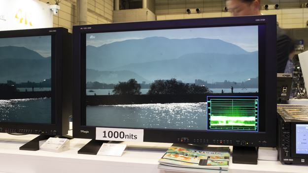 TVLogicのコーナーで、特に目に付いのが31インチ4K HDRリファレンスモニター「LUM-310X」だ。最大輝度1,000nits、黒深度0.001nitの再現域を持ち、コントラストも1,000,000:1を実現。PQ/HLGなどのHDR規格と、Rec.709、DCI、およびRec.2020を含む複数の色域をサポート。液晶2枚使う特殊なパネルを採用。これはソニーのBVM-HX310に匹敵する性能をもったリファレンスモニターだ。