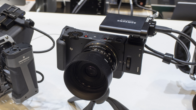 外付けUSBのSSD対応機種として、4Kや6Kに対応したブラックマジックデザインのPocket Cinema Camera 4K/Pocket Cinema Camera 6K、SIGMA fpを展示。これらはシネマカメラと呼ばれているジャンルの製品で、RAW記録に対応しているが、RAWになるとデータ量が大きく、カードへの内部収録では容量不足や速度不足が起こる。そこで最近増えてきているのが、4K RAW映像をカメラ本体からUSB Type-Cの外付けポータブルSSDに接続して直接レコーディングが可能なシネマカメラだ。