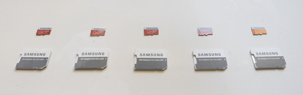 microSD対応機種では、4K記録に対応した小型カメラ「Osmo Pocket」「Osmo Action」「GoPro Hero8」を展示。これらのカメラは、microSDカードに4K60P記録が可能だ。
