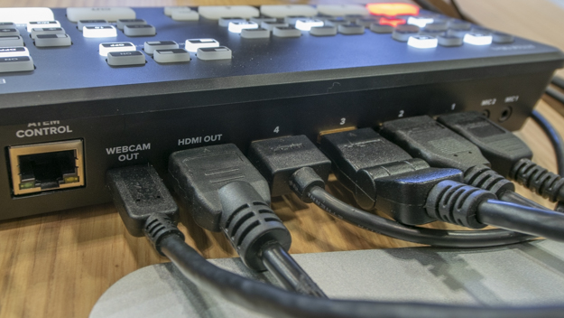 4入力あるHDMIソースの切り替えが可能で、2つのステレオオーディオ入力を装備し、PinPやクロマキー合成も可能。また、HDMI出力とUSBウェブカム出力に対応。USBコネクターを搭載しており、接続するとソフトウェアは一般的なWebカムとして認識するようになっている。これだけの機能を実現しながら、税別35,980円というのは驚きだ。