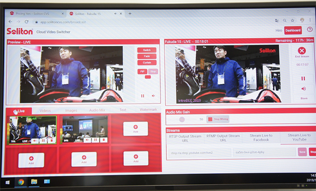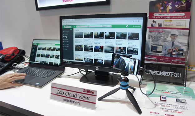 ソリトンシステムズはライブ映像中継システム「Smart-telecaster Zao-S」をメインに、Zao-Sの次世代ファームウェアを搭載した超短遅延ライブ中継機「Smart-telecaster Zao-SH」を展示した。また、クラウド上に送出されているZao-Sのストリーミング映像をPCなどのブラウザ上でスイッチングを行う「Cloud Video Switcher」や、複数の受信機をWebでコントロールできる「Zao Web Management」も披露された。
