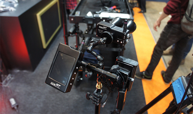 Focusbugはカナダのバンクーバーの会社で、今回デモされていたのはシネマレンズにAF機能を付加できるCine RTシステム。これは超音波で距離を計測する方式であり、カメラにセットされたセンサーで距離を計測し、それをレンズにセットしたサーボモーターでレンズのフォーカスリングを回転させてフォーカシングを行う。または専用の小型送信機を使うことでそこをフォーカスのターゲットにすることもできる。