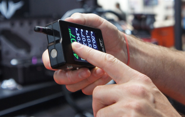 設定を行うハンドセットコントロールユニット。センサーユニットやディスプレイユニットなどとは2.4GHzのワイヤレスで最大240mまで離れても使用できる