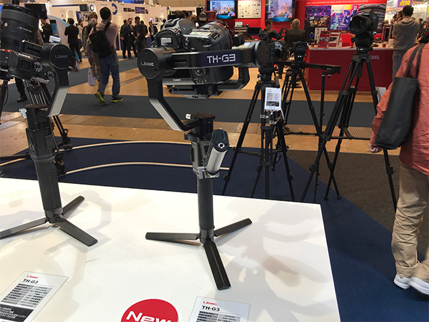 平和精機工業(Libec)は、プロダクションやブロードキャスト、プロビデオなどの使用用途に合わせたエリアをブース内に設け、新製品となる自立式一脚のリニューアルモデルTH-M、グランドスプレッダー用フロアマットFM-1B、同社初となる小型カメラ用3軸電動ジンバルTH-G3、2気室一体型カメラバッグのUrban CamBagなどを展示。その他にも、スタジオペデスタルのQHシリーズや、無段階カウンターバランスシステムを搭載した三脚システムのRSPLUSシリーズなどを展示した。また、毎年恒例となっている修理相談コーナーや小型クレーンなども出展されていた。