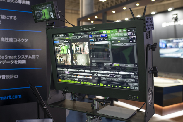一見よく見る外部SDIモニターに見えるが、これはQTAKEビデオアシストシステムの一体型ハードウェア「Ovide Smart EVO+」だ。SMART DOCKは、本体とは別にMacを用意しなければいけなかったが、EVO+は、これ一台ですべて完結されている。モニターはタッチパネルを採用し、QTAKEの全機能をタッチで制御可能。SMART DOCKは、2つのビデオ入力と6つのビデオ出力だったが、EVO+は4つのビデオ入力、12つのビデオ出力対応のシステムとなっている。