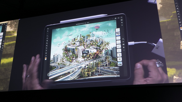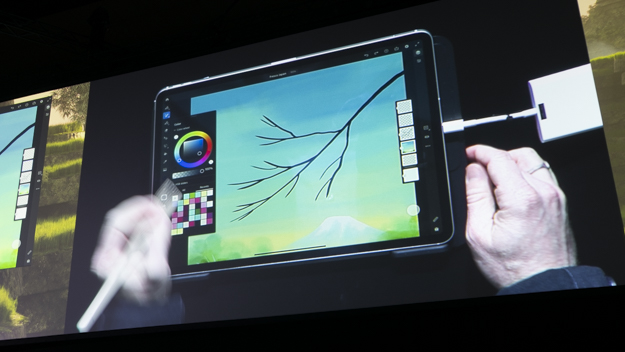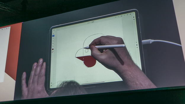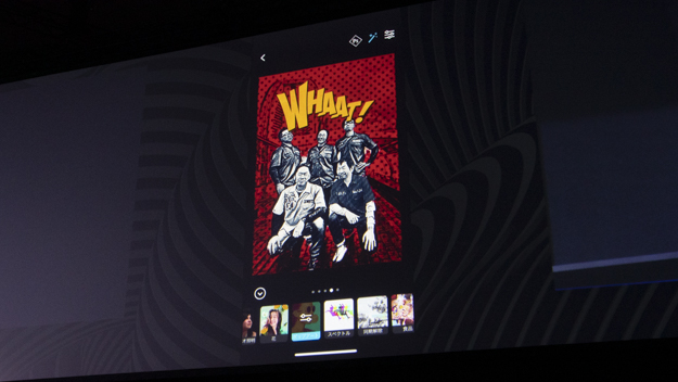 iPadのIllustratorの紹介も行われた。クラウドのドキュメントをすべてiPadからアクセス可能で、iPadでデザインを開始して、仕上げはデスクトップといった連携が可能になる。特にiPad版Illustratorで特徴的なのは、Apple Pencilと連携によりペンでベジェ曲線が引けるところだ。パフォーマンスも充実しており、何千、何万というオブジェクトであっても円滑に機能が可能。Illustrator iPad版の登場によって、デスクトップ版Illustratorよりもイラストを駆使した表現が手短に制作できるようになりそうだ。