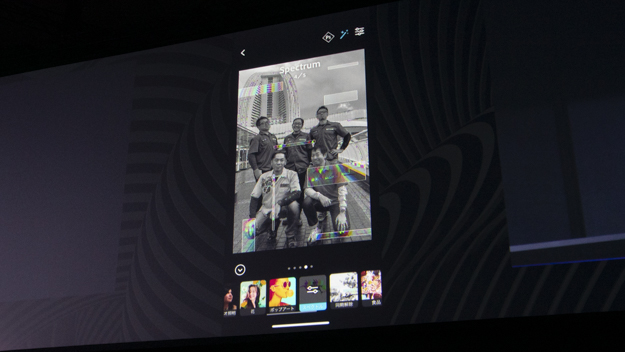 キーノートの登壇メンバーの写真を使った例。スペクトルのレンズを適用すると、このように違ったイメージになる。