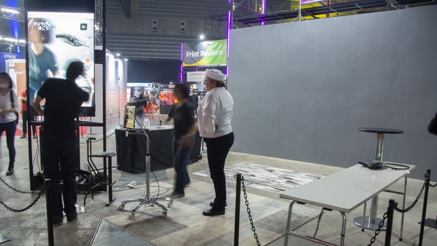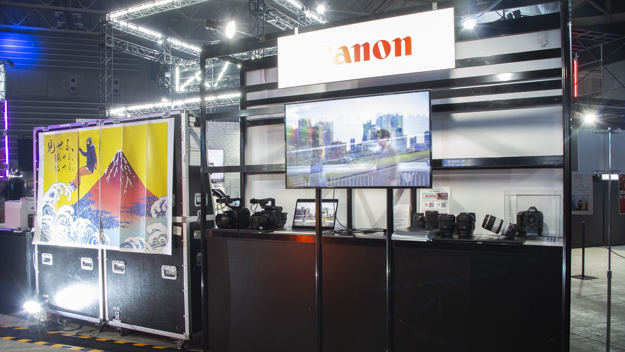 キヤノンブースのメイン展示はオンデマンドプリンターの「imagePRESS」だが、その裏では、CINEMA EOS SYSTEMシリーズやスチルカメラのEOSシリーズを体感できるコーナーが設けられていた