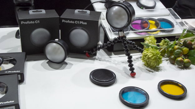 プロフォトもAdobe MAX Japanに初出展。プロフォトといえばTTL対応のモノブロックストロボが有名だが、MAX Japanではスマートフォン用スタジオライトの「C1」と「C1 Plus」を一押しで紹介していた。光源はLEDで、定常光と瞬間光と両方に対応。瞬間光に設定すると、スマホのシャッターに合わせて定常光よりも強い光で撮れるようになる。