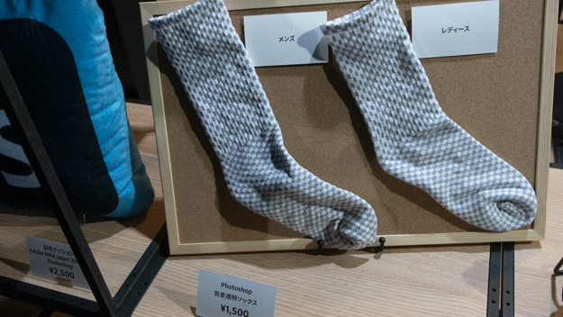 Photoshopで背景が透明な状態を再現した「Photoshop背景透明ソックス」。きちんと防寒機能もある。価格は税込1,500円