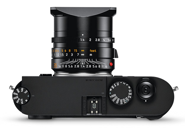 外観デザインもシンプルで、本体正面にはライカの赤ロゴを入れずに、トップカバーの上面に「Leica M10 Monochrom」と刻印するだけにとどめている。操作部などに刻まれている文字や数字の色をホワイトやグレーで統一し、モノクロ撮影の専用デジタルカメラであることを強調するデザインを採用。また、本体サイズは「ライカMモノクローム」よりも4mmほど薄くなっている。