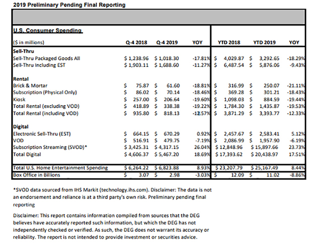デジタル・エンターテイメント・グループ(DEG)によると、米国での2019年のディスク売上高は、2005年のピーク時の163億ドル(約1兆7900億円)から80%近く減少した。2019年ではYoY-18.2%で約59億ドル。半面、ストリーミングやダウンロードなどデジタル配信の売上高は2016年にディスク売上を追い越し、2019年はYoYで+23.7%の急増の159億ドル、ホームエンターテイメント市場全体の63%を占めている。2社は、物理的なビジネスは依然として業界にとって重要であるとみなし、流通を最適化することで、フォーマット存在の寿命を延ばす考えである。