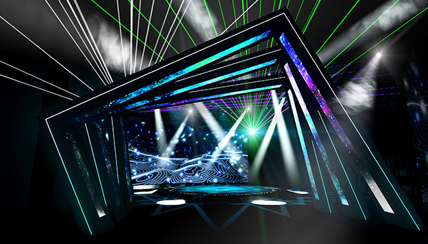 タケナカ/アークベンチャーズのブースでは「体感」「体験」をテーマに、バーチャルプレゼンターやイマーシブオーディオといったソリューションを紹介。高精細LEDビジョンを使った大画面のデジタルステージで、映像、音響、照明技術を駆使した空間演出が体感できるという。その他にも、ステージデザイン、映像・照明演出などのリアルタイム3Dシミュレーションが可能なメディアサーバー「disguise」や、オブジェクトの位置情報を取得できるトラッキングシステム「BLACKTRAX」を紹介予定。