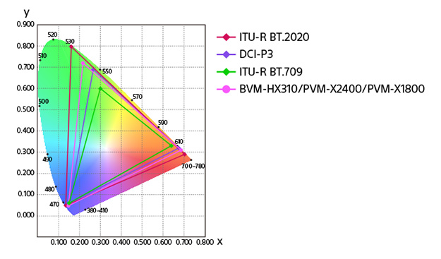 同社のマスターモニター「BVM-HX310」と同一色域を持つ広色域パネルを用い、忠実に色を再現