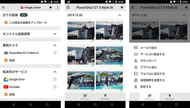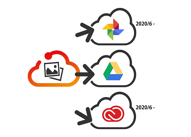 2020年4月のサービス開始時には、image.canonから「Google Drive」などへ自動で静止画・動画が転送行える。2020年6月からは、クラウドストレージサービス「Google One」(メンバーシッププラン)を介した「Google Photos」ならびに「Adobe Creative Cloud」(メンバーシッププラン)との連携を予定。自動転送された静止画は、連携先のサービスやアプリ上でオリジナル画質のまま編集できるほか、保管や共有も容易になるとしている。